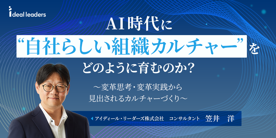 AIを業務効率化ツールとして「プラス」する段階から、AIを前提に人間が独自価値を加える「AIプラス」へ―この転換期に、自社らしい組織カルチャーがなぜ競争優位の源泉となるのか。AIが汎用的な解を提示する時代、他社との差別化を図る鍵は意図的に育むカルチャーにあります。変革支援コンサルティング28年超の笠井洋氏が、共感力・決断力・弱さを開示する力(Vulnerability)など、AI時代のリーダーに求められる人間ならではの能力を解説します。